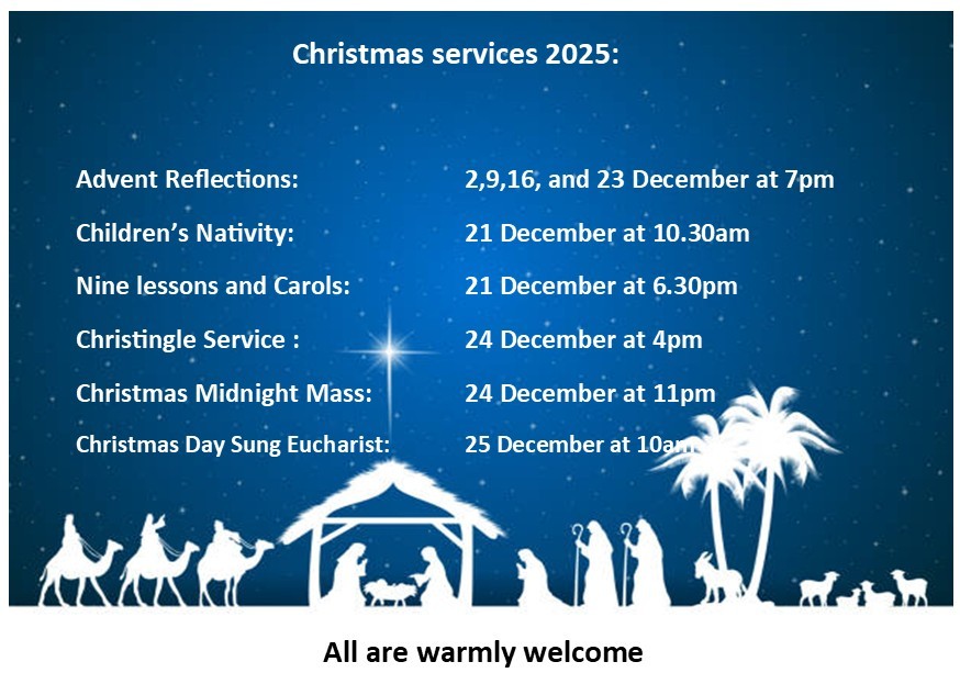 Said Eucharist on Thursday at 7pm (No Eucharist on Christmas and New Year’s Day).